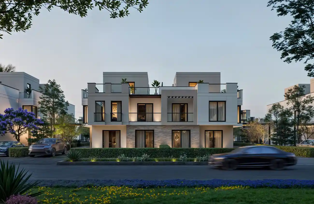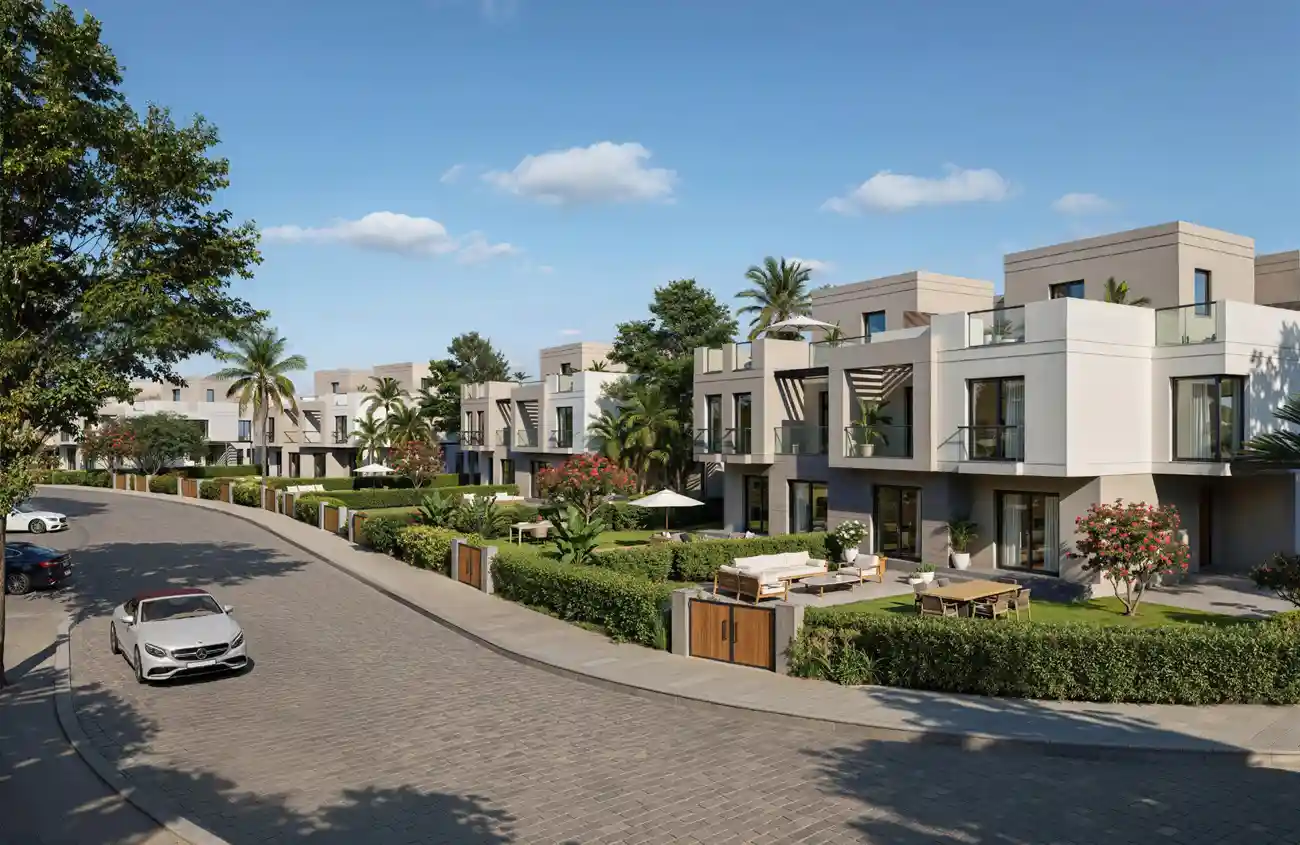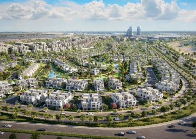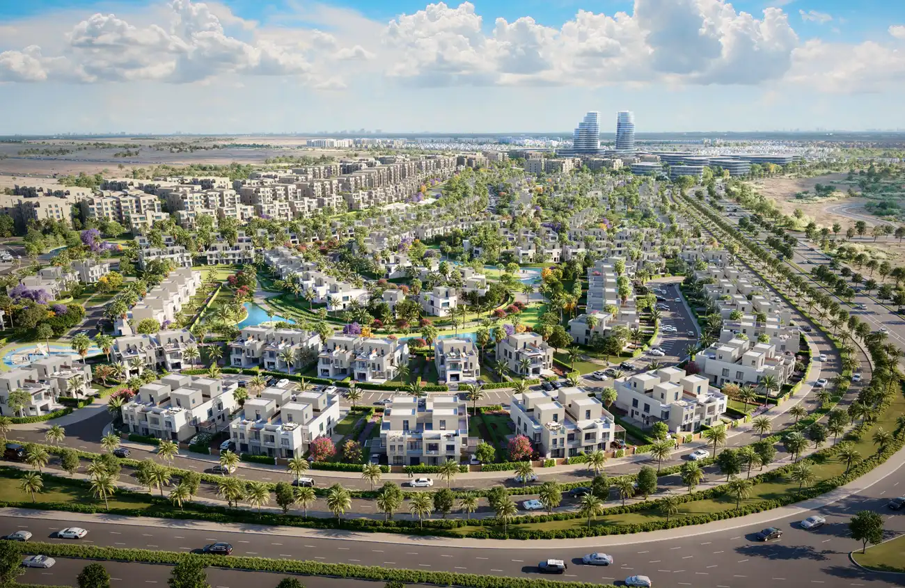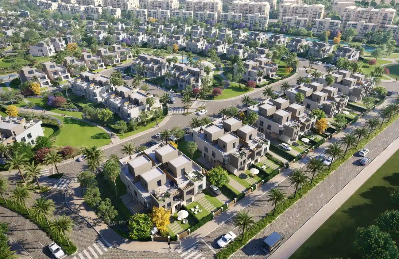 تخطيط عمراني ذكي: تصميمات معمارية عصرية تمتد على مساحة 220 فدان، مع مساحات خضراء واسعة توفر بيئة هادئة وإطلالات مميزة.